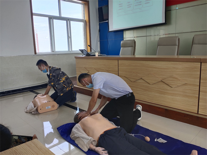 在活动现场,市红十字会救护师任睿佳向大家详细讲解、展示了创伤止血、包扎、固定基本知识及要领。在模拟人体上演示了心肺复苏、人工呼吸、自动体外除颤仪(AED)的用法等救护操作流程,并针对实际操作过程中患者体位放置、气道开放、清除异物、人工呼吸、心脏按压、复苏征兆等方面进行了着重讲解。